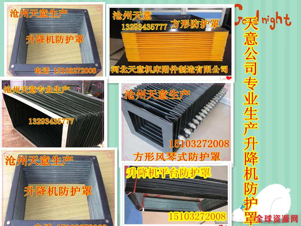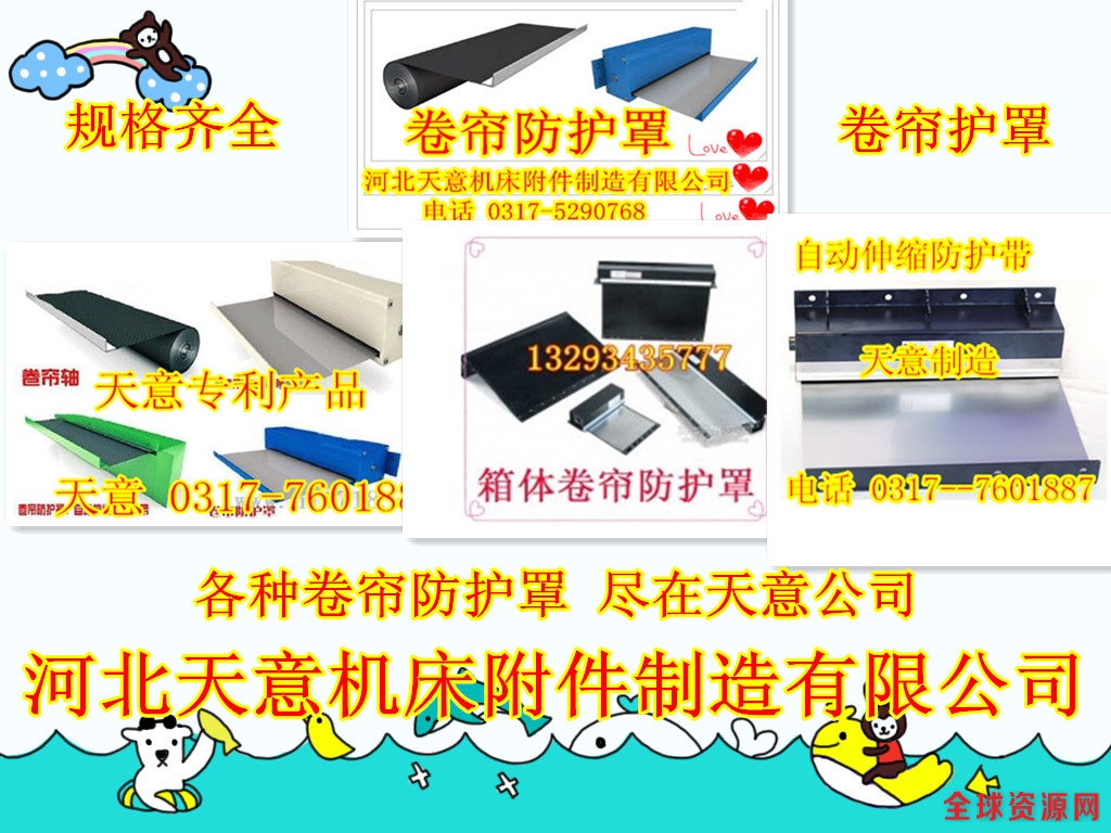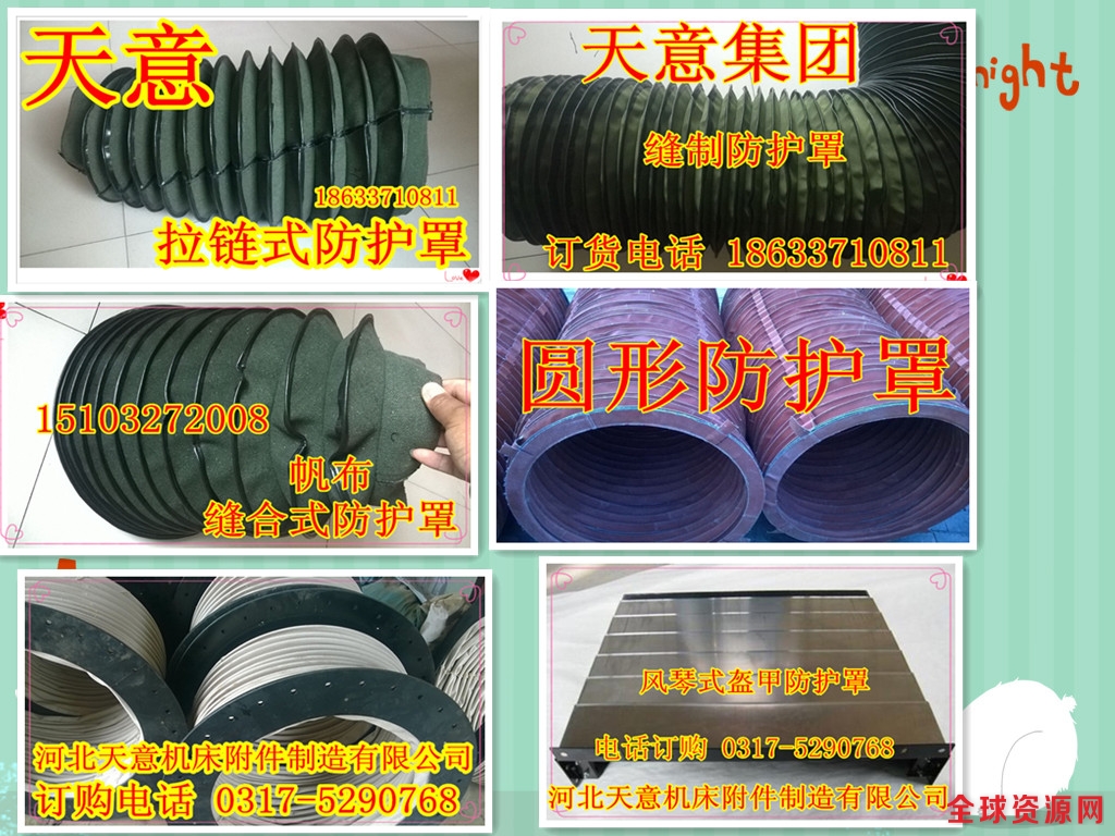 全国统一免费电话:《0317--5290768》 河北天意机床防护罩制造有限公司现更名为《沧州恒德机床附件制造有限公司》(中德合资企业),公司创建于1998年,位于渤海之滨沧州市黄河大道18号,公司拥有一批德国技术人员,采用世界领先技术,高科技制作工艺,全部自动化大型流水线作业。为全国80余家大型机床设备配套,其产品性能和市场占有率已遥遥领先于国内外同类产品、主要产品有:防护罩 风琴式防护罩 圆形防护罩 油缸防护套 丝杠防护套 气缸防护套 卷帘式防护罩 升降机防护罩 盔甲式防护罩 铠甲式防护罩 导轨机床防护罩 钢板导轨防护罩 帆布防护罩 缝制防护罩 帆布软连接 伸缩式防护罩 油缸防尘套 丝杠防尘套 丝杆防尘套 工业防护罩 医疗器材防护罩 缝制帆布防护罩 缝合式防护罩 圆筒式防护罩 油缸保护套 丝杠保护套 气缸保护套 帆布保护套 耐高温防护罩 拉链式防尘罩 阻燃布防护罩 皮革布防护罩 三防布防护罩 升降台防护罩 机床防护罩、丝杆防护罩、油缸保护套、光杠防护罩、气缸防护罩、气缸防尘罩、拉链防护罩、缝制防护罩、直线导轨防护罩、圆形防护罩、升降机防护罩、托架式卷帘防护罩、箱体式卷帘防护罩 丝杠防护罩、钢板防护罩、、柔性风琴式防护罩、不锈钢片盔甲防护罩、不锈钢板 床导轨防护罩、油缸防护罩、橡胶防护罩、耐油防护罩、焊接防护罩、整体伸缩式风琴防护罩、螺旋钢带防护罩、塑料拖链、钢铝拖链、链板式排屑器 机床排屑器 机床排屑机 链板排屑机 工作灯、机床垫铁等每个产品有百余种型号供您选择!